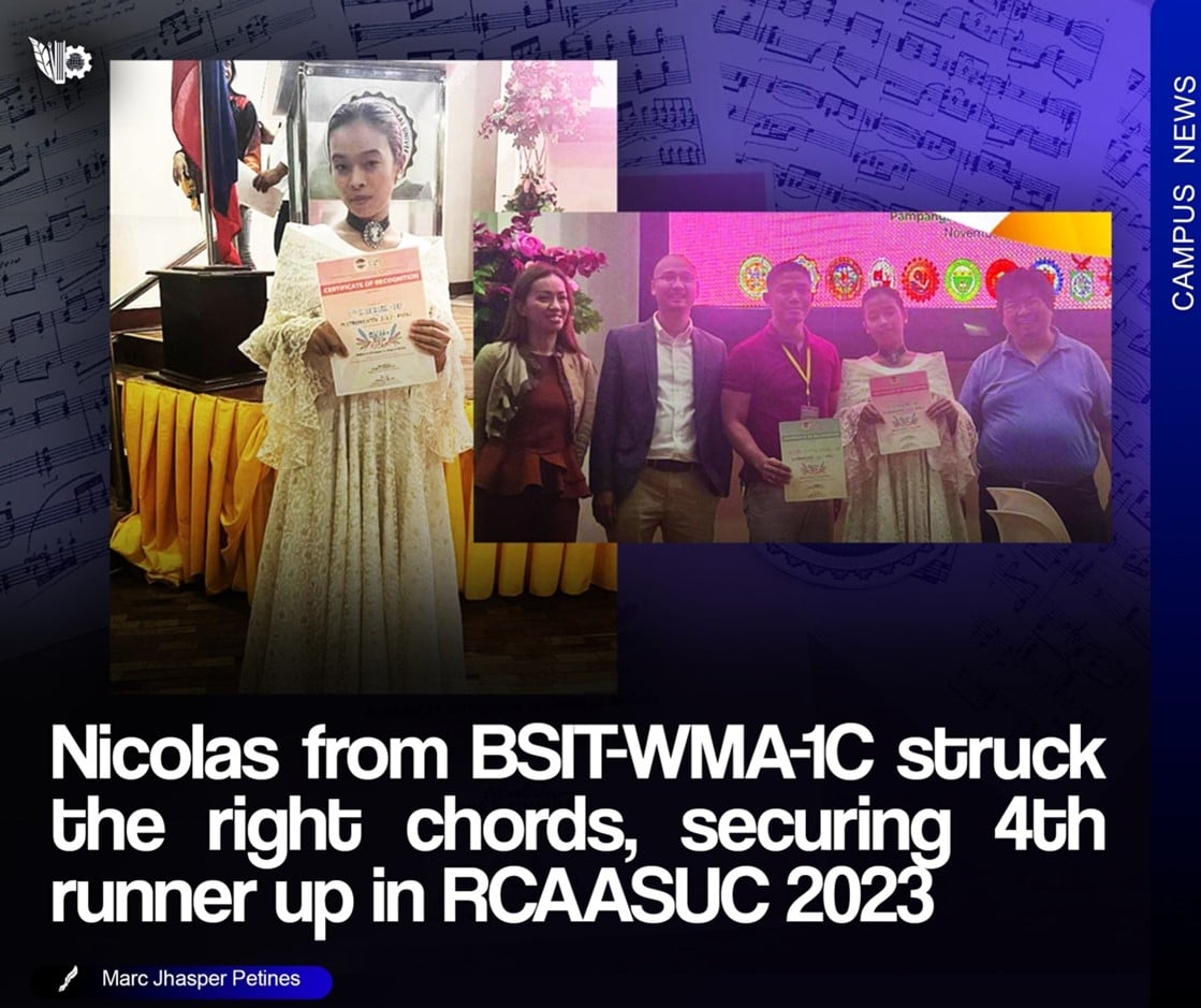 Marlyn Francesca R. Nicolas from BSIT-WMA-1C strike the right chords as she cliched 4th runner-up in the Instrumental Piano category during the 2023 Regional Culture and the Arts Festival on November 23 held at the Pampanga State Agricultural University.