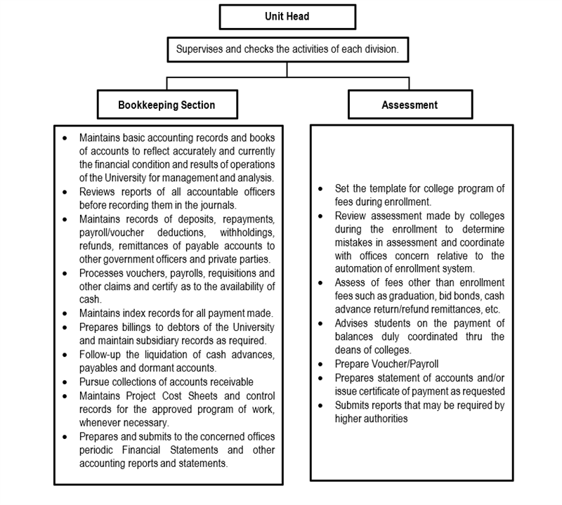 1.4 Report the financial positions and results of operations of the university for the information of all persons concerned. Advise the University President on the status of cash and such other accounting reports and statements as basis for decision making.