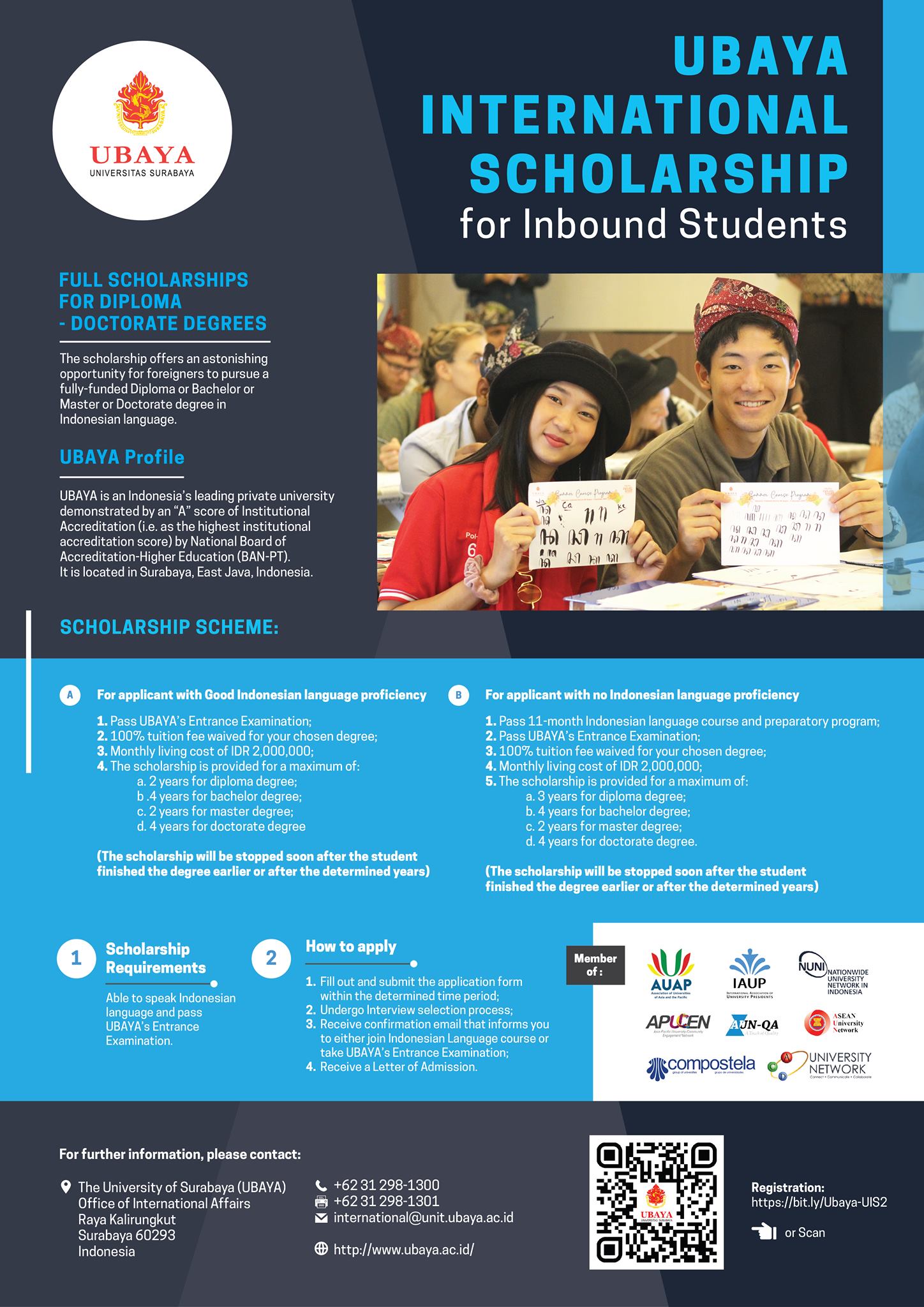 Following the successful implementation of the 1st UBAYA International Scholarship (UIS), the university is now offering the 2nd UIS for Diploma, Bachelor, Master, or Doctorate degree.