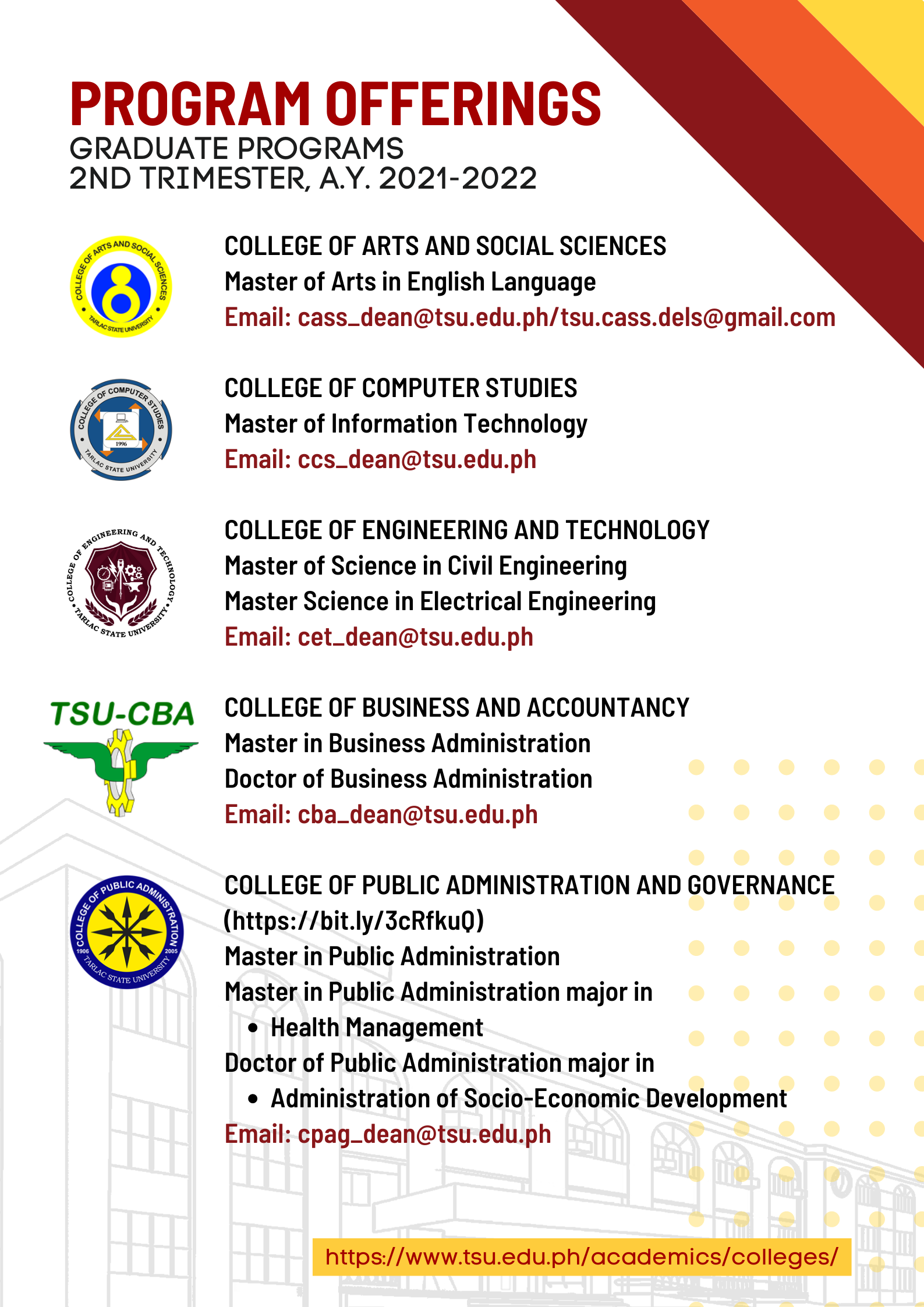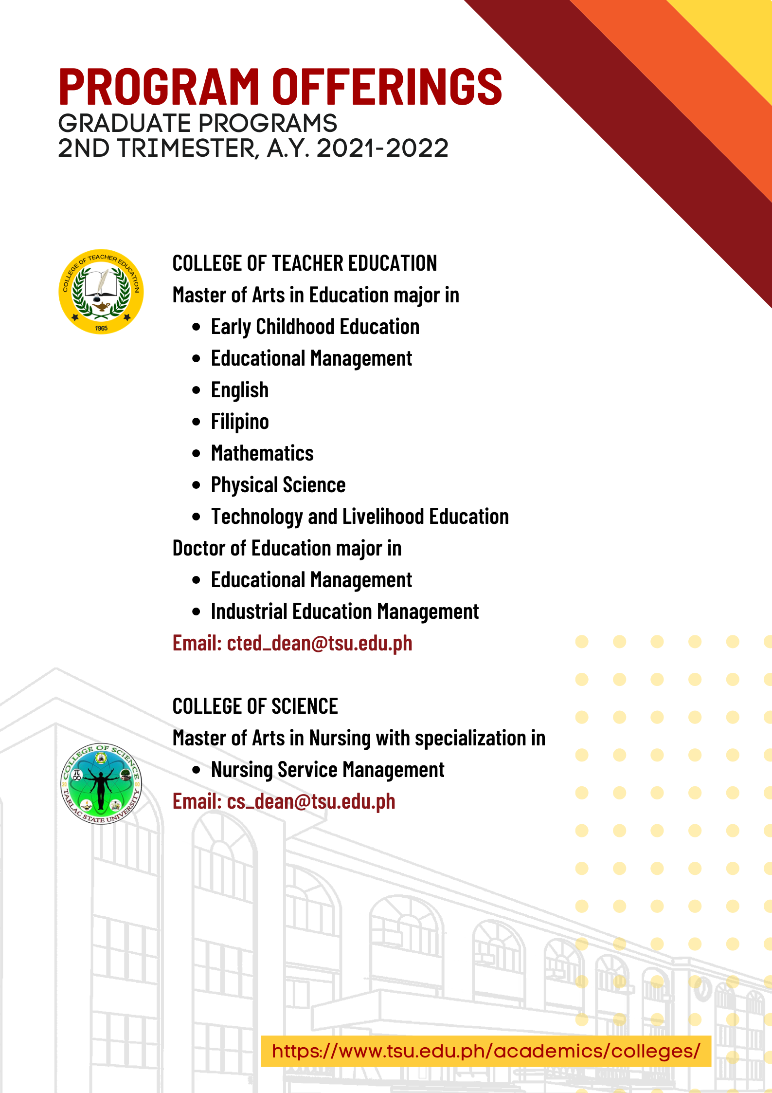 Please see list of programs offered here: https://tsu.edu.ph/academics/academic-programs/
