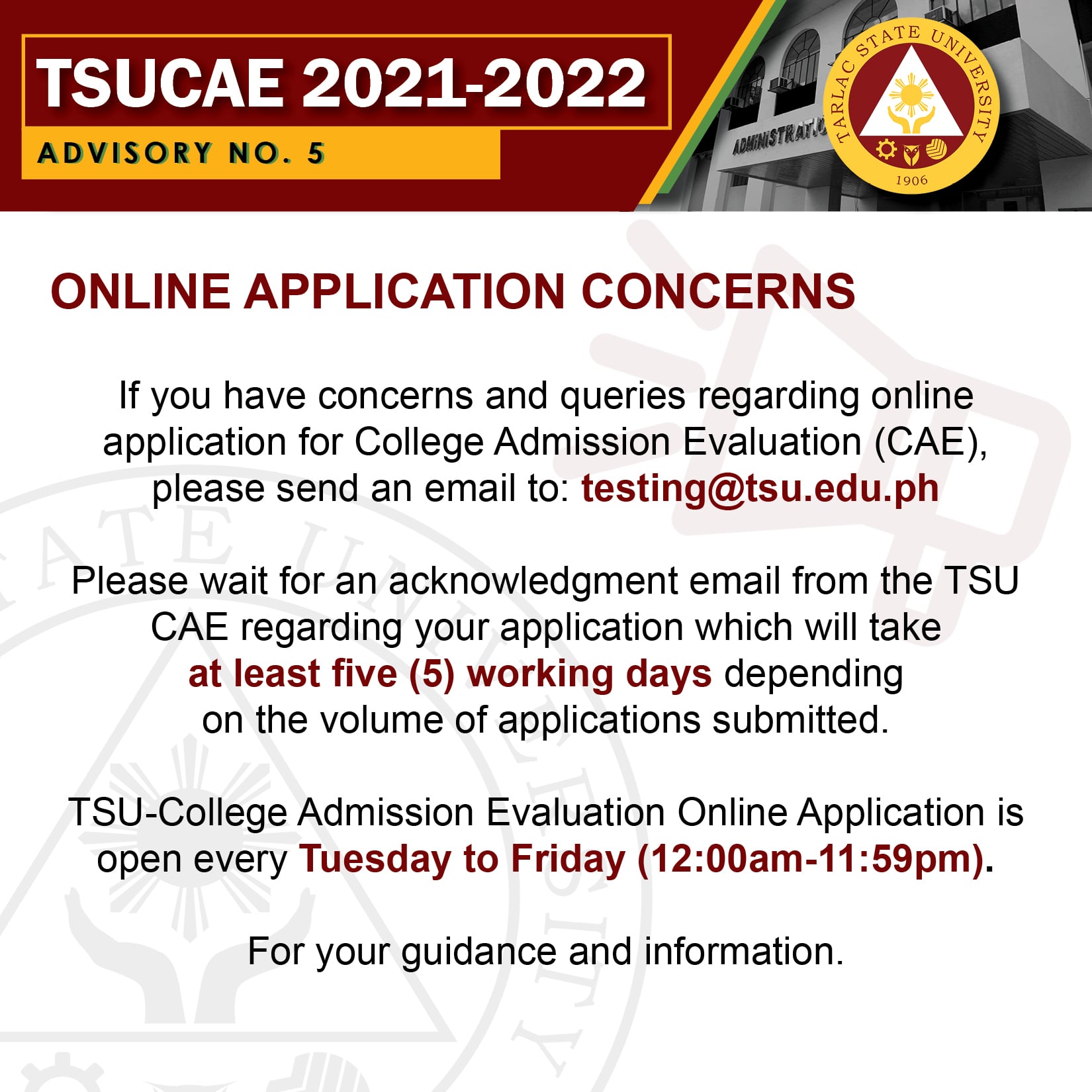TSU CAE ADVISORY NO. 5: ONLINE APPLICATION CONCERNS