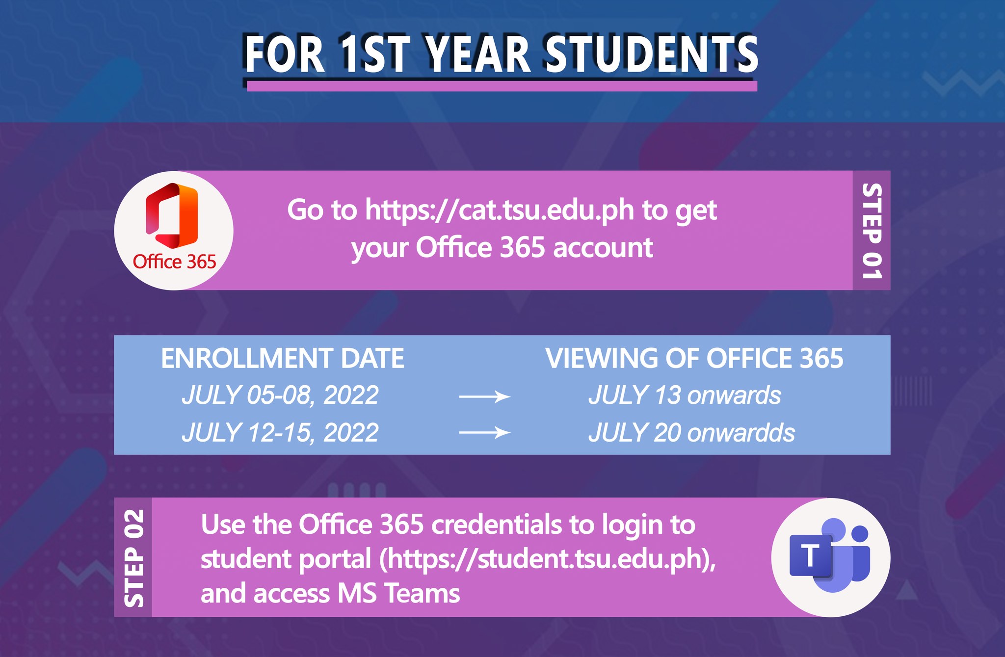 - Step 1: Go to https://cat.tsu.edu.ph to get your Office365 account