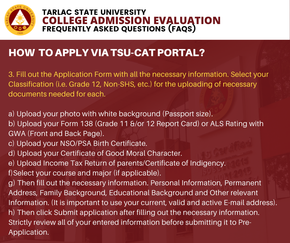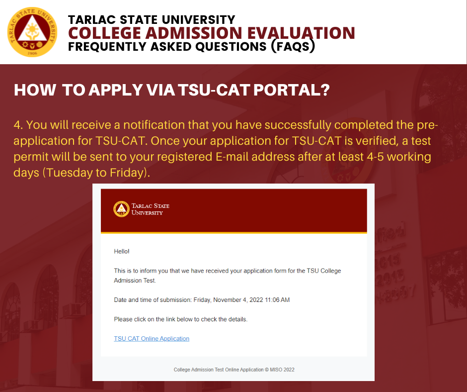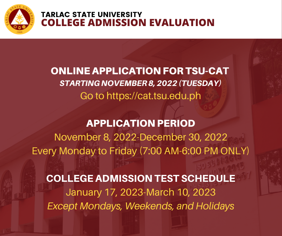 To all aspiring TSU first-year applicants, the online application for the TSU College Admission Evaluation for Academic Year 2023-2024 starts today, November 8, 2022.