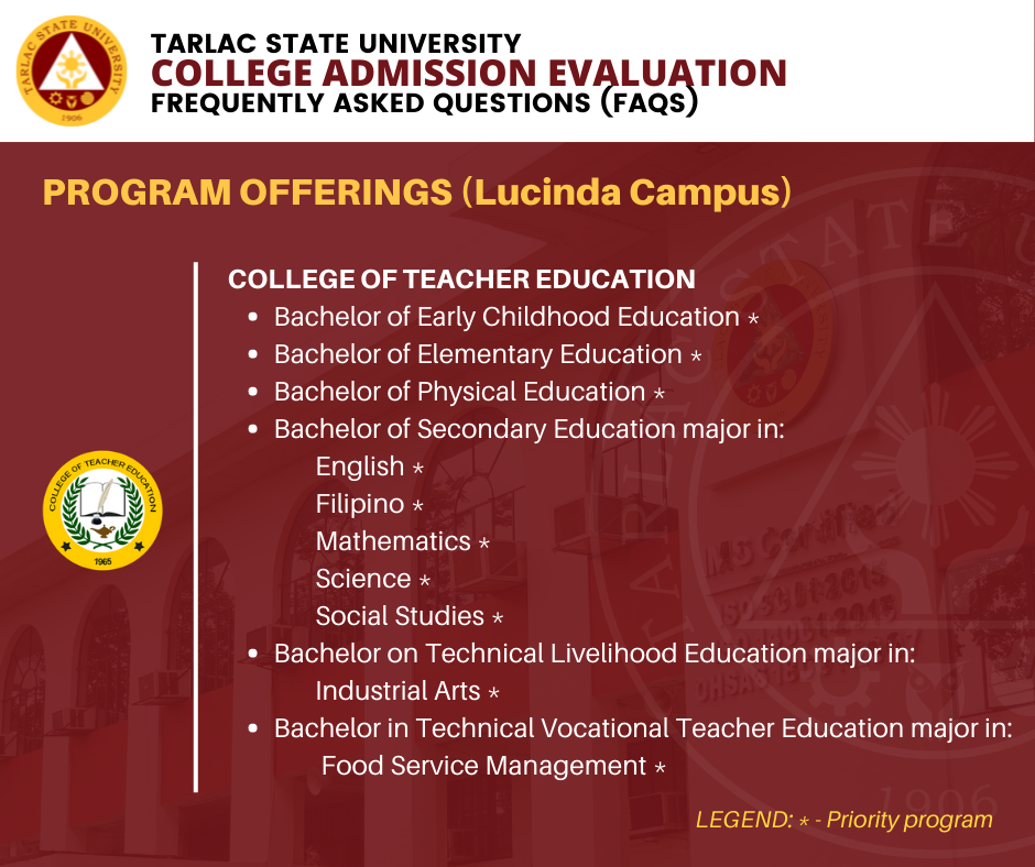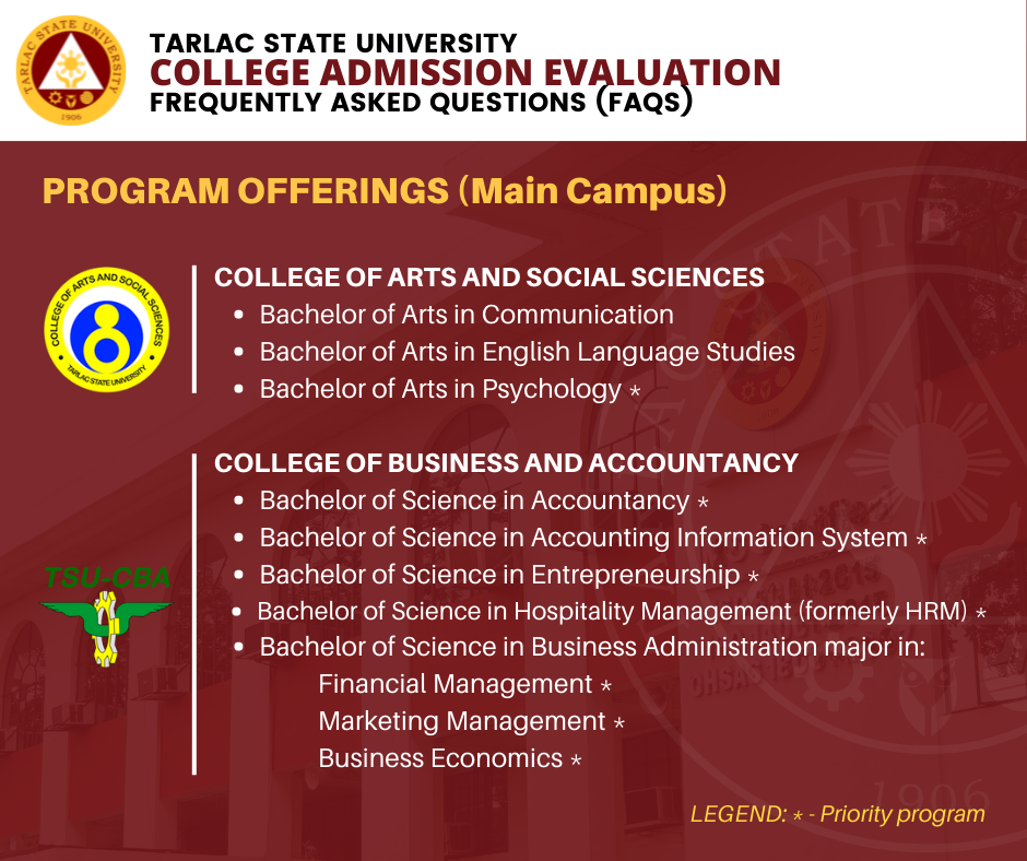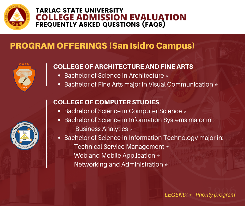 To learn more about the program you wish to apply to, you may also check out this link (https://www.tsu.edu.ph/academics/colleges/)