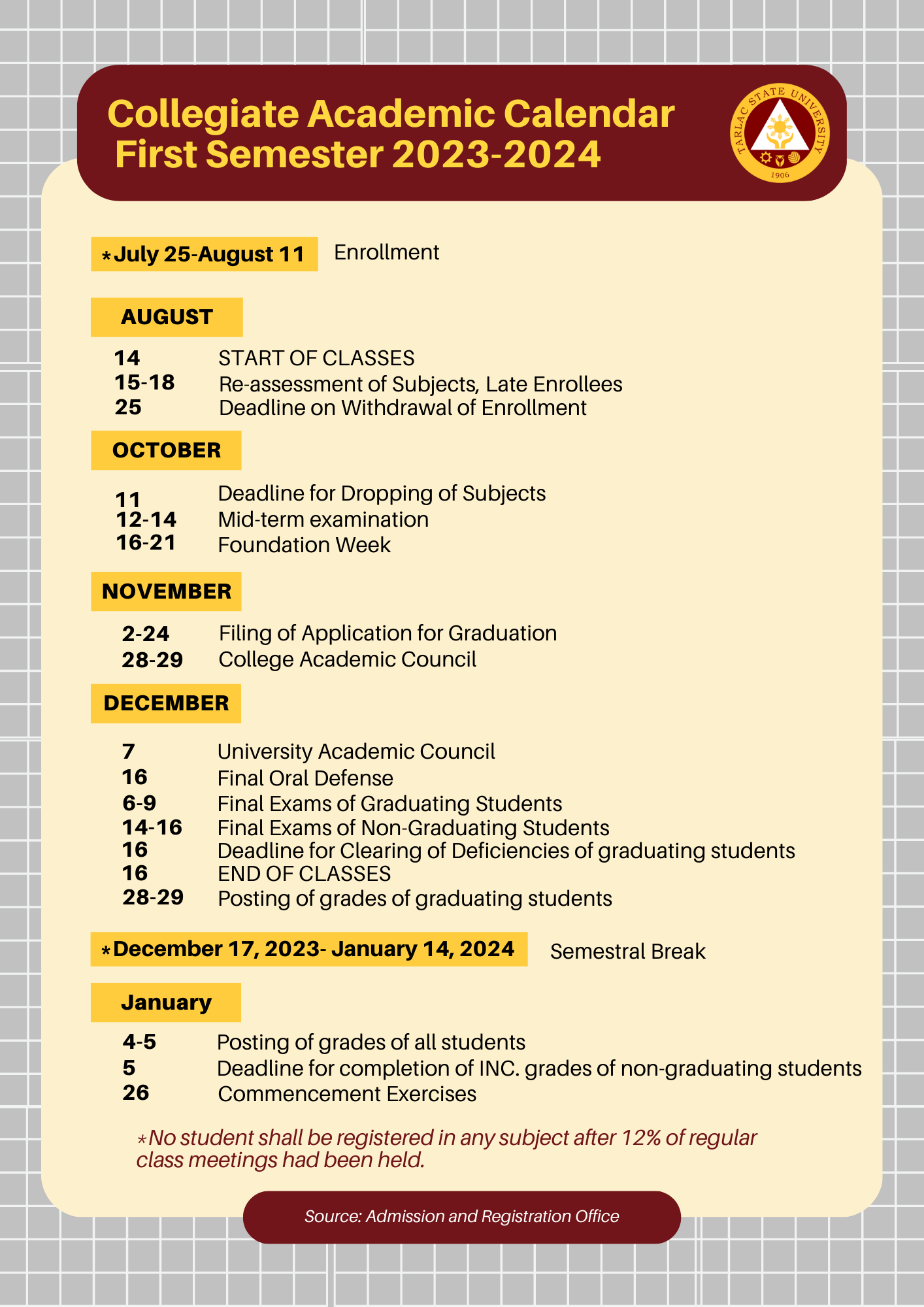 Other details are available on the uploaded social media card. The collegiate academic calendar for the upcoming 1st semester is also attached for everyone's reference.