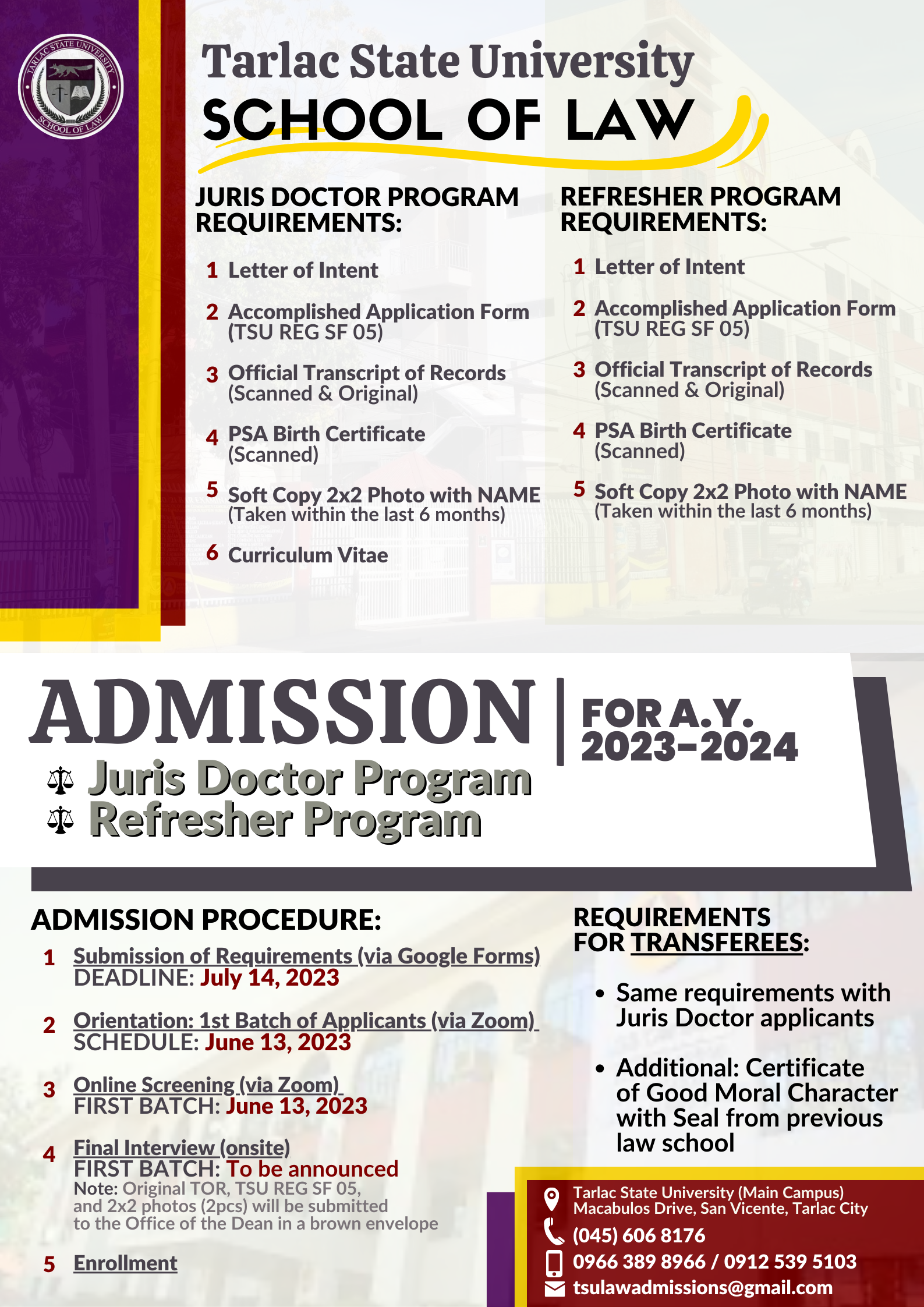 This is the official Online Admission procedure of Tอaอrอlอaอcอ Sอtอaอtอeอ Uอnอiอvอeอrอsอiอtอyอ - Sอcอhอoอoอlอ oอfอ Lอaอwอ for Academic Year 2023-2024.