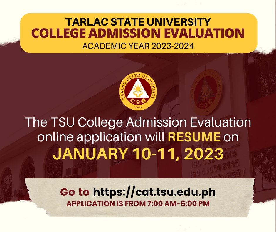 To give way to the online enrollment and viewing of grades, the TSU College Admission Evaluation is temporarily closed from January 5 to 9.