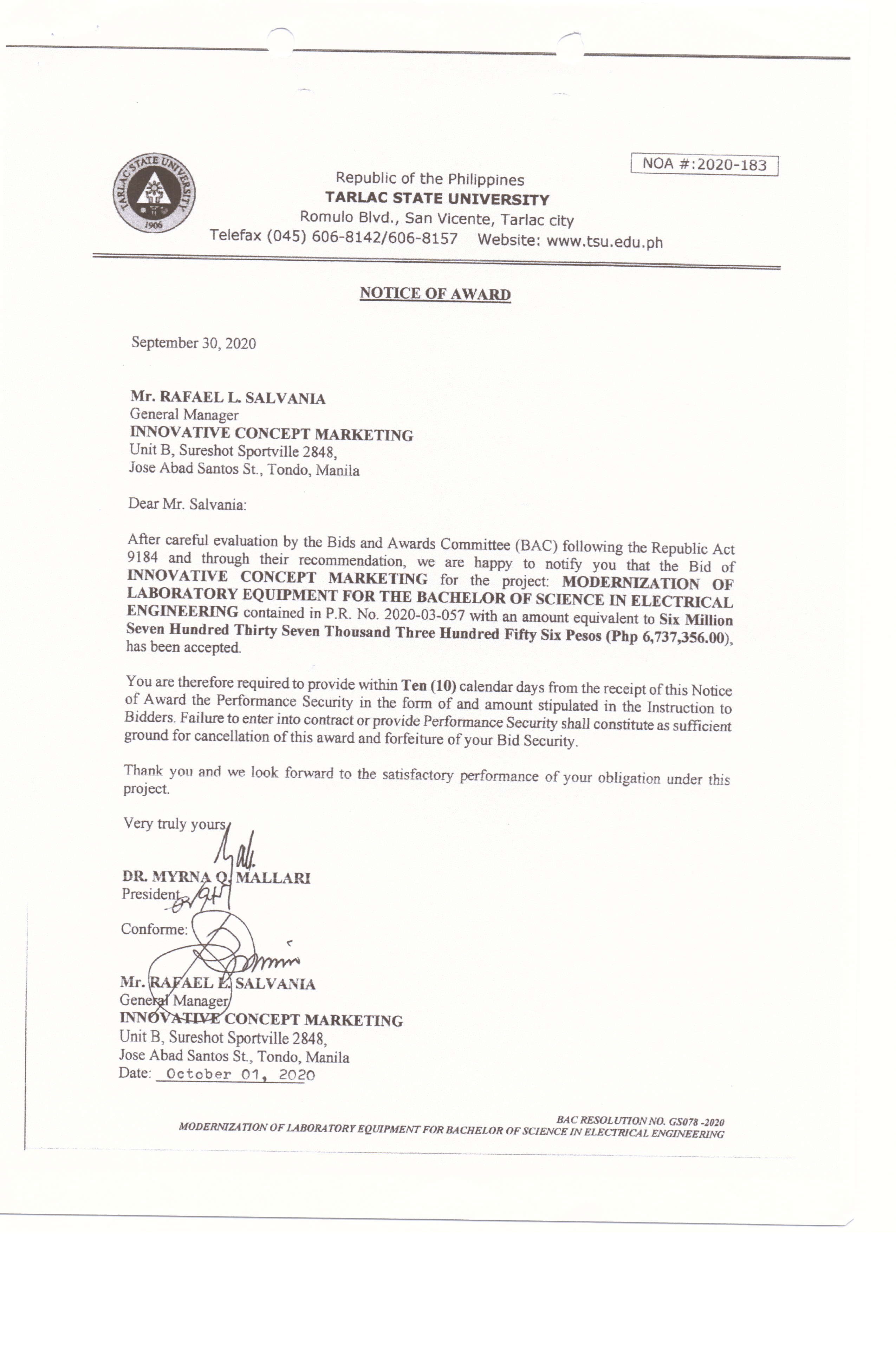 NEGOTIATED PROCUREMENT MODERNIZATION OF LABORATORY EQUIPMENT FOR BACHELOR OF SCIENCE IN ELECTRICAL ENGINEERING