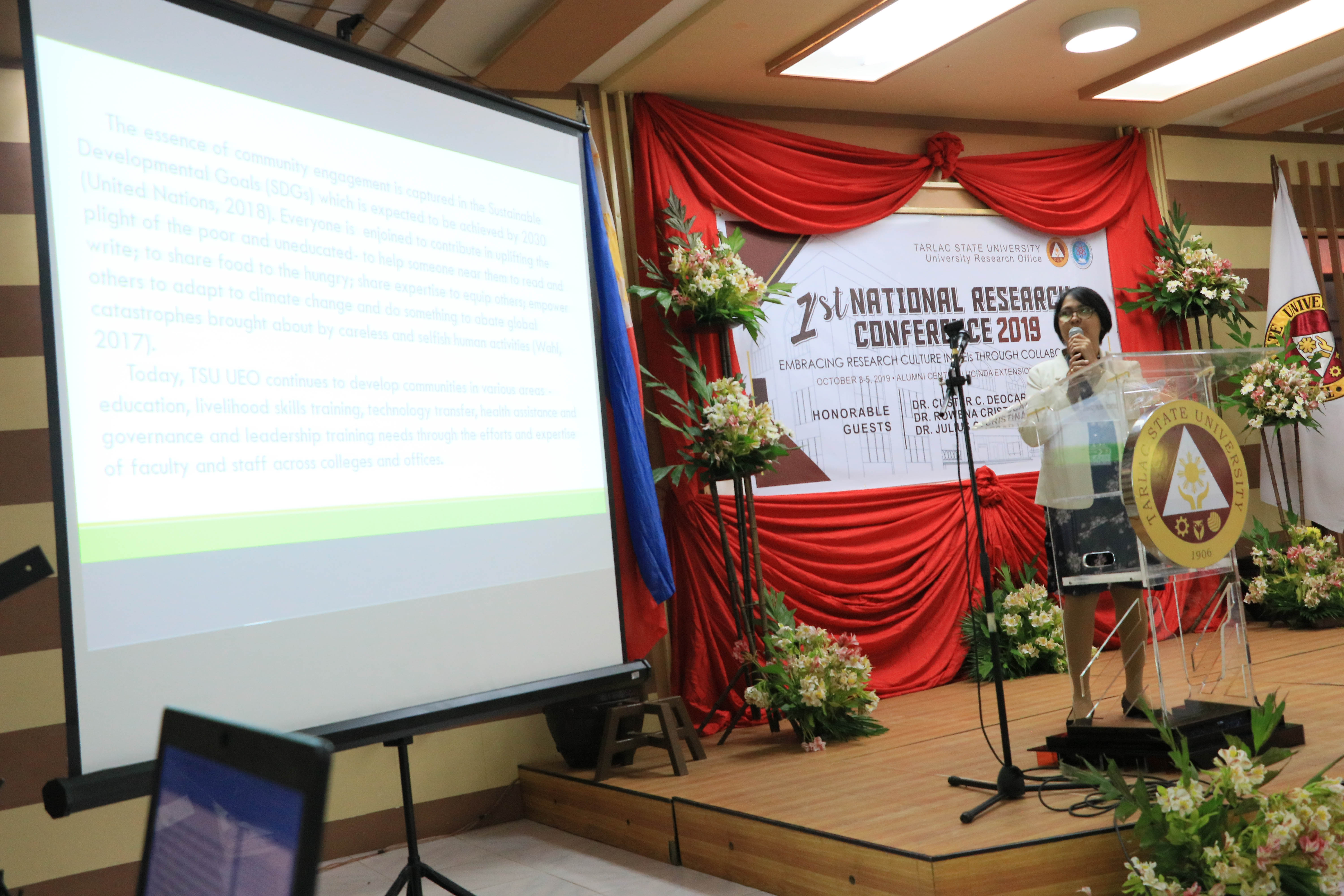 Adhering to university’s mission to become a premier research institution and to strengthen collaboration with various institutions, Tarlac State University organized its 1st National Research Conference themed “Embracing Research Culture in HEIs through Collaboration” on October 3-5, 2019 at the TSU Alumni Center, Villa Lucinda Campus.