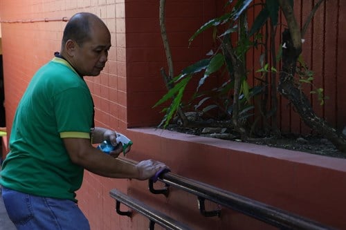 Disinfecting of rooms, corridors, handrails and other facilities will be done twice a day until further notice. This is in compliance to the Resolution No. 10, s. 2020 dated March 9, 2020 by the Inter-Agency Task Force for the Management of Emerging Infectious Diseases which seeks to intensify the precautionary measures against COVID-19.