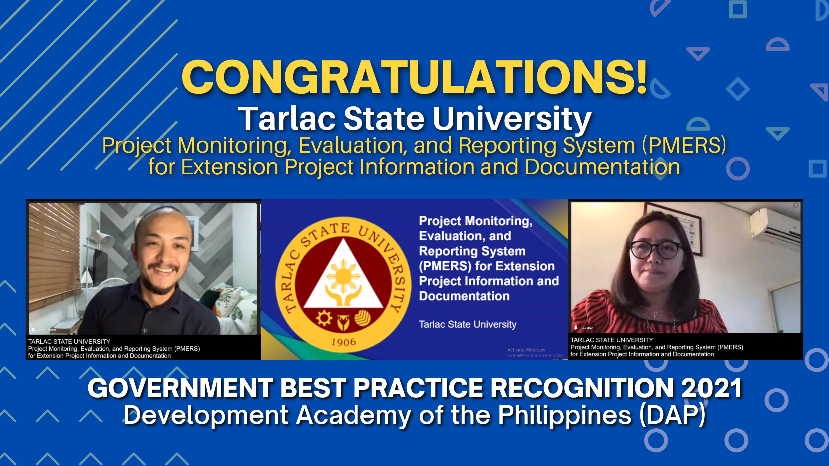 Out of 12 finalists, Tarlac State University, through the Extension Services Management Office, emerged as one of the five winners in the Government Best Practice Recognition 2021 of the Development Academy of the Philippines.