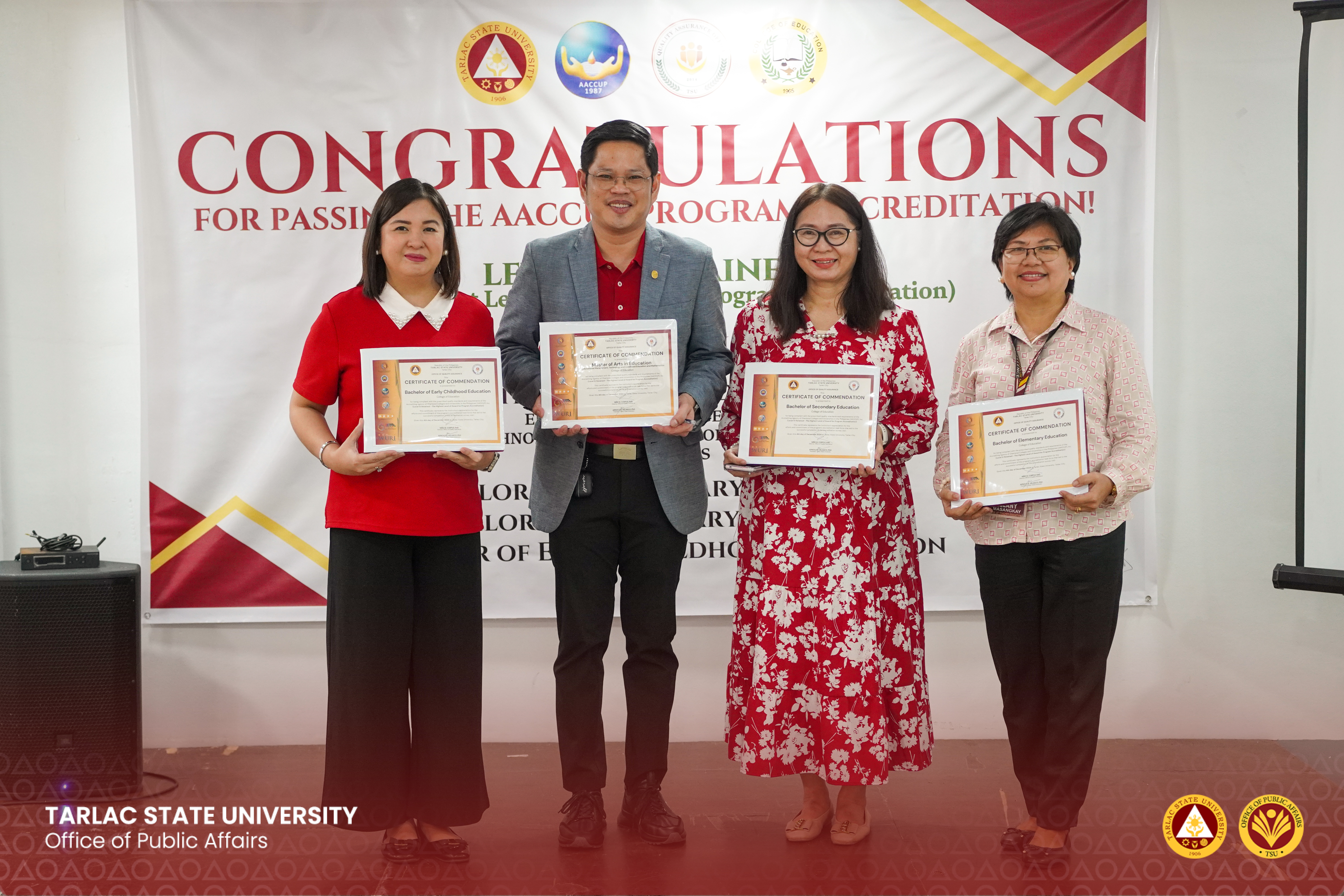 Four programs under the College of Education formally received the certificates of their program accreditation with a Level IV "retained" status earlier today (December 4) at the TSU Hotel in Lucinda Campus.