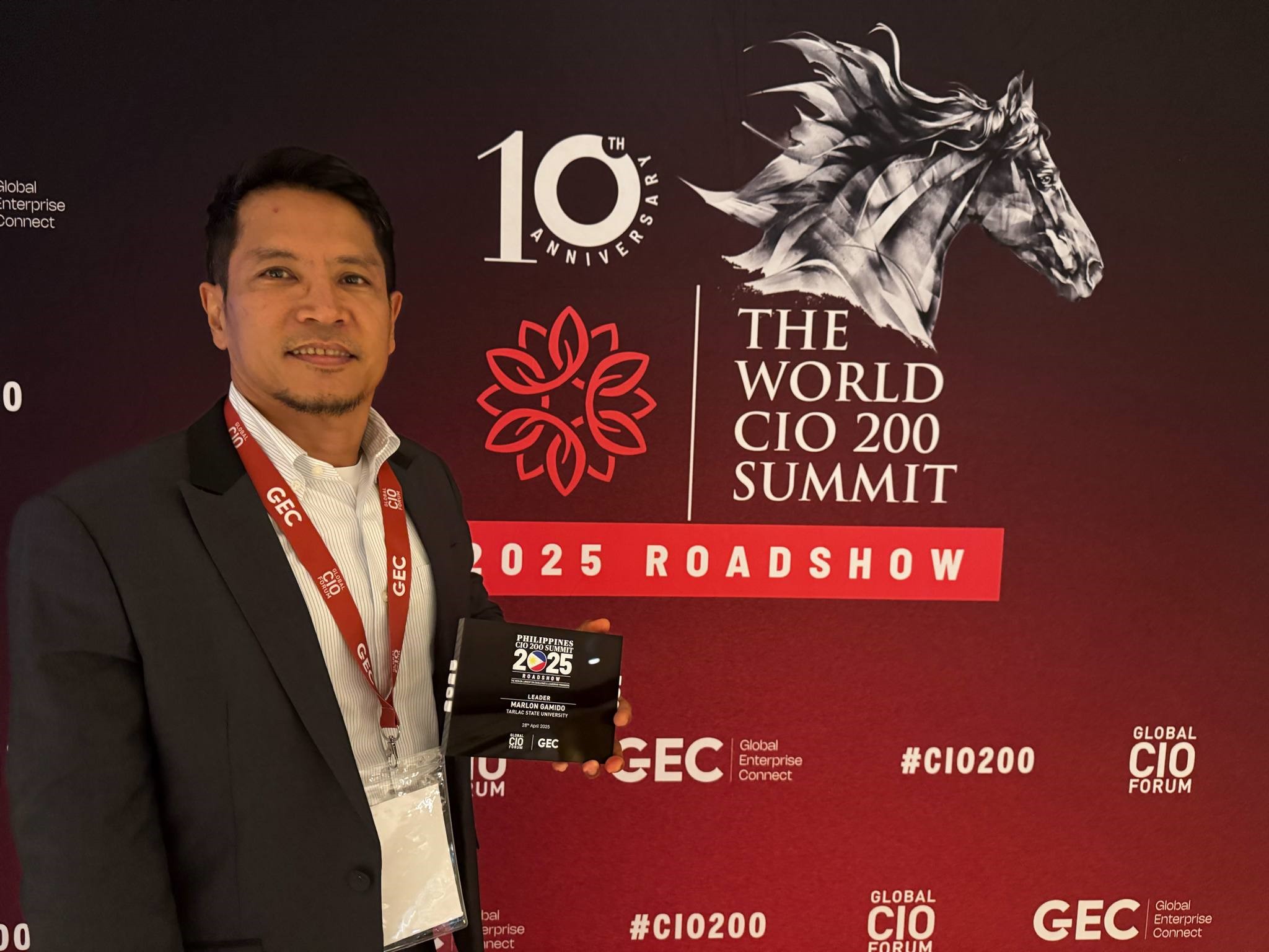 Dr. Marlon V. Gamido, Office of Management Information Systems director, has been recognized as one of the recipients of the World Chief Information Officers (CIO) 200 Awards during the Philippines CIO 200 Summit 2025, held on April 28 at Dusit Thani Manila.